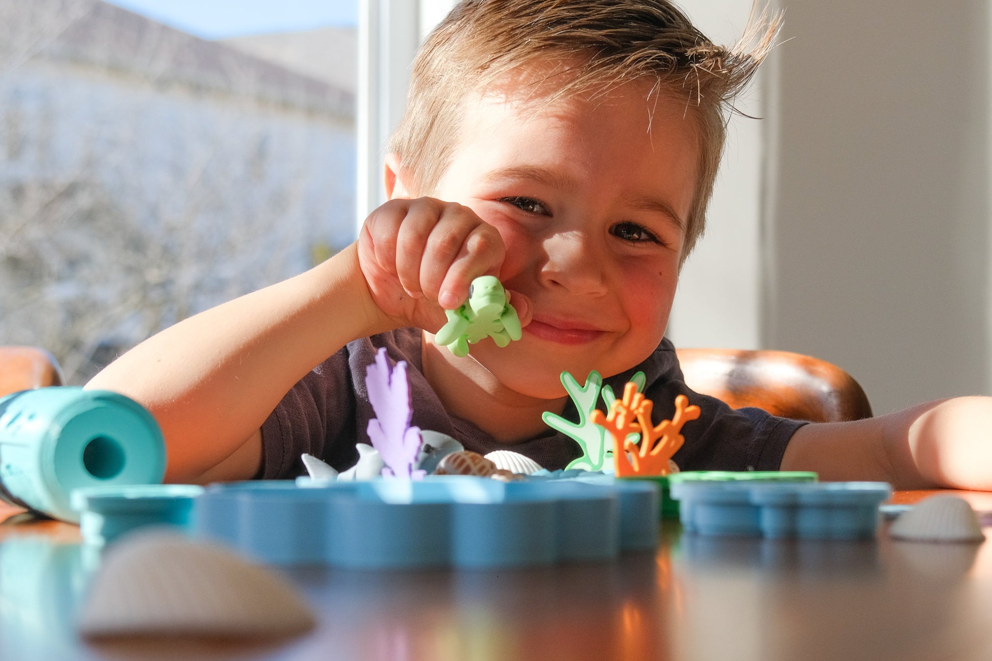 With soft, ocean-inspired play-dough, real shells, and fun ocean-themed play pieces, kids can sculpt sandy beaches, coral reefs, playful sea animals, and more. As they play, they'll explore gentle, age-appropriate ways to help protect our oceans.
